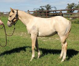Whips N Diamonds has had several very nice foals for us. This filly will be staying here to become part of our program. We are excited to have a double registered all around bred mare. As a yearling, this filly was already as tall as a 2 year old. She has a ton of muscle and bone. Her first foal by Vegas Resort was outstanding.