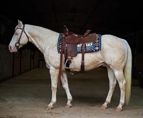 Dustin is by Nugget of Truth. (AQHA 5100443 APHA Listed) 2008 cremello stallion. Nugget was a finished ranch horse that was used by McMullin Ranch for several years to sire working ranch horses and arena prospects. He was the foundation of their ranch horse breeding program and sired prospects that were conformationally correct, super hardy with big bones, and trainable minds. He has multiple offspring that have gone on to be successful and proven riding/working horses in multiple disciplines. Nugget of Truth is by TW Colonel Chickasha 4391911 (2003) buckskin stallion, sire of 6 foals. TW Colonel Chickasha was sired by Doc A Tari 2166401 (1983) sorrel stallion. Doc A Tari sired 126 foals with 10 performing. His offspring have earned NRHA and NSBA money. Doc A Tari was sired by Doc Tari 0683537 (1970) sorrel stallion. 75% NFQHA. Doc Tari was a 1973 reserve champion NCHA futurity, NCHA LTE $16,942, NCHA COA Bronze, NRHA PE $28,000, Equi-Stat Cutting Offspring LTE: $4,608,649. Doc Tari was sired by Doc Bar (1956) AQHA 36 points, SI 75. Doc Bar's accomplishments include: AQHA and NCHA Hall of Fame, the number 1 all-time leading maternal Grand Sire of AQHA and NCHA cutting horses, and the Leading Sire Of: World Champion Cutters, AQHA Ch, NCHA Ch, & Arena ROMs.