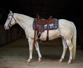 Blanca is by Nugget of Truth. (AQHA 5100443 APHA Listed) 2008 cremello stallion. Nugget was a finished ranch horse that was used by McMullin Ranch for several years to sire working ranch horses and arena prospects. He was the foundation of their ranch horse breeding program and sired prospects that were conformationally correct, super hardy with big bones, and trainable minds. He has multiple offspring that have gone on to be successful and proven riding/working horses in multiple disciplines. Nugget of Truth is by TW Colonel Chickasha 4391911 (2003) buckskin stallion, sire of 6 foals. TW Colonel Chickasha was sired by Doc A Tari 2166401 (1983) sorrel stallion. Doc A Tari sired 126 foals with 10 performing. His offspring have earned NRHA and NSBA money. Doc A Tari was sired by Doc Tari 0683537 (1970) sorrel stallion. 75% NFQHA. Doc Tari was a 1973 reserve champion NCHA futurity, NCHA LTE $16,942, NCHA COA Bronze, NRHA PE $28,000, Equi-Stat Cutting Offspring LTE: $4,608,649. Doc Tari was sired by Doc Bar (1956) AQHA 36 points, SI 75. Doc Bar's accomplishments include: AQHA and NCHA Hall of Fame, the number 1 all-time leading maternal Grand Sire of AQHA and NCHA cutting horses, and the Leading Sire Of: World Champion Cutters, AQHA Ch, NCHA Ch, & Arena ROMs.