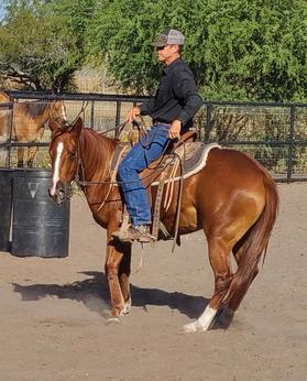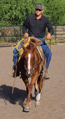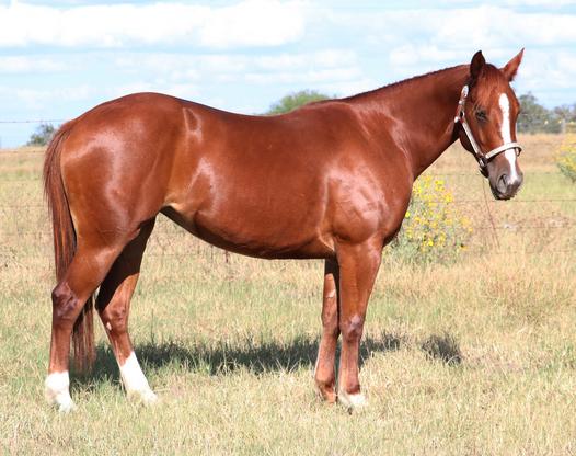 This mare is from Flying O Cow Horses owned by the O'Brien family in Beeville, Texas. She comes from a long tradition of roping and cow horses. We picked her up with 45 days under saddle with James O'Brien. We are excited to see what she produces for us. She is expecting her first foal in 2022.